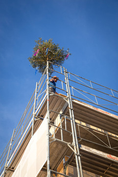 Nach kurzen Ansprachen von INSIDE96 Geschäftsführer Joe, Welte, dem Bauherr Karl Heinz Proprenter, sowie Bürgermeister Jürgen Bachmann wurde traditionsmäßig der Baum aufgezogen und der Firstspruch verlesen. Anschließend ließen die Anwesenden den Abend mit schmackhaften Streetfood von Herberts Dorfmetzg ausklingen.
